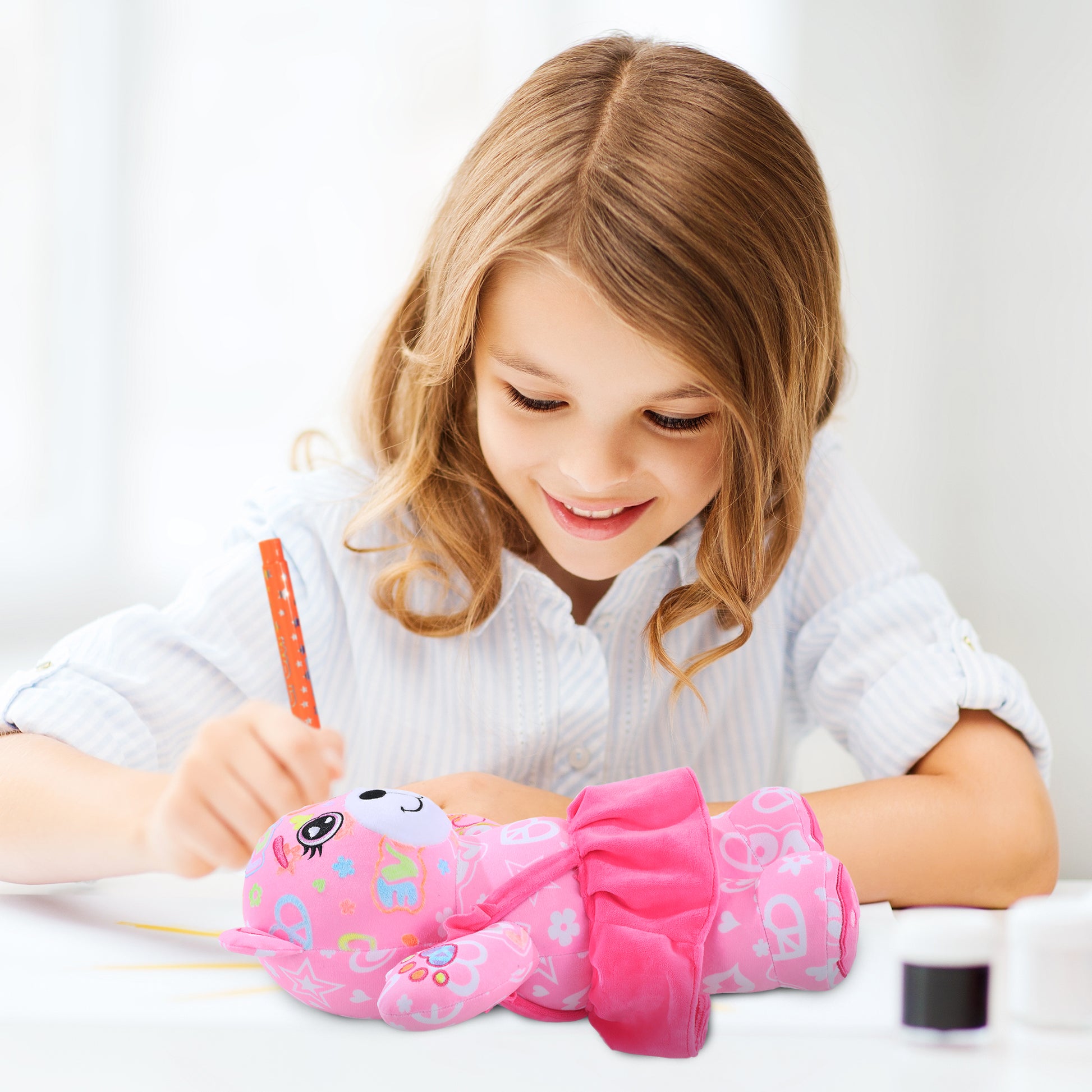HOMBYS Glow in The Dark Coloring Plush Toy with 6 Glow Markers for Girls, Arts and Crafts Doodle Dolls, DIY Soft Stuffed Pink Bear for Kids