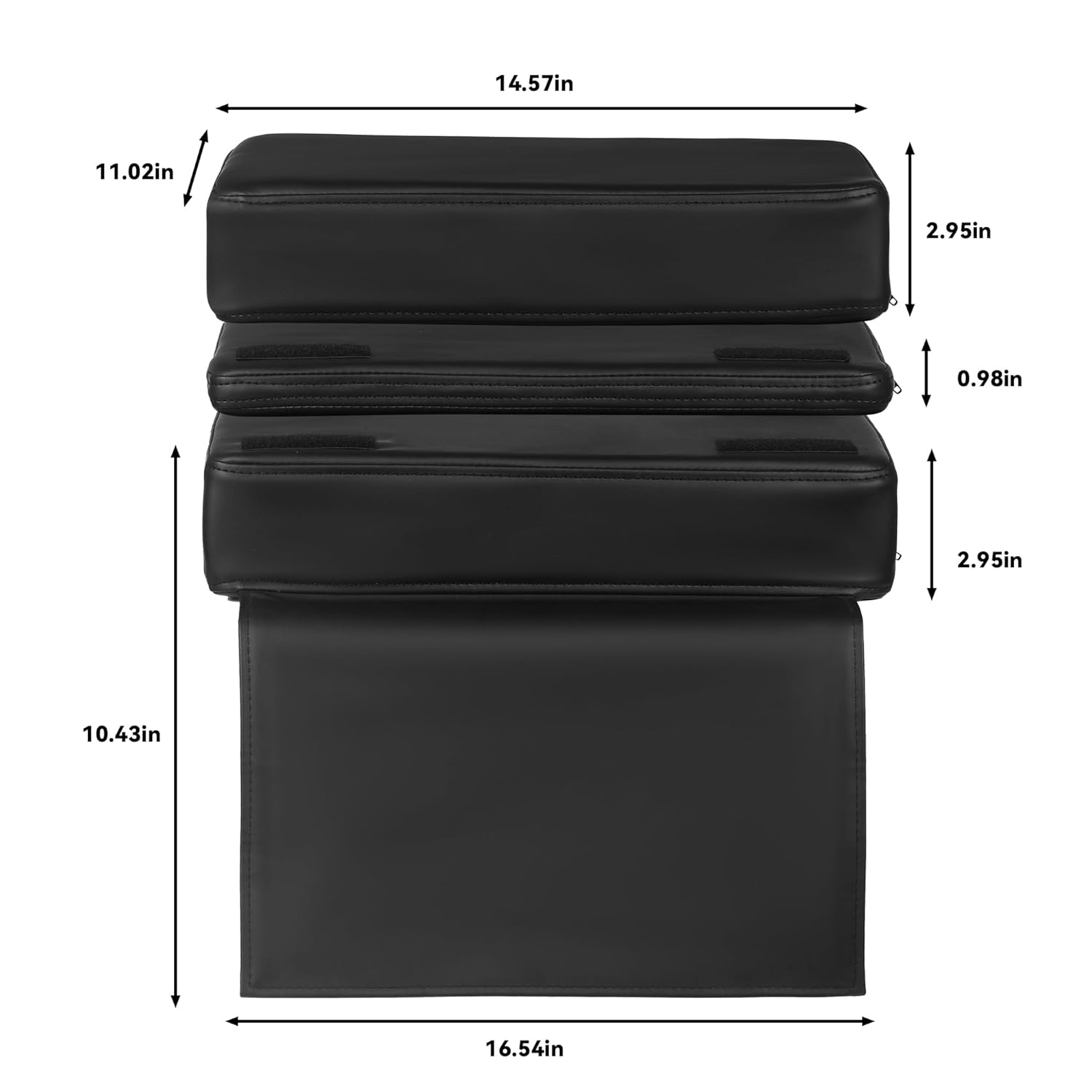 - 【SIZE & Self-contained Lap】14.8 “Lx11.2 ”W,Height adjustable from 3 inches to 6.8 inches. This booster cushion is spacious and comfortable, with the self-contained Lap design to protect the edge of the barber chair seat from abrasion.