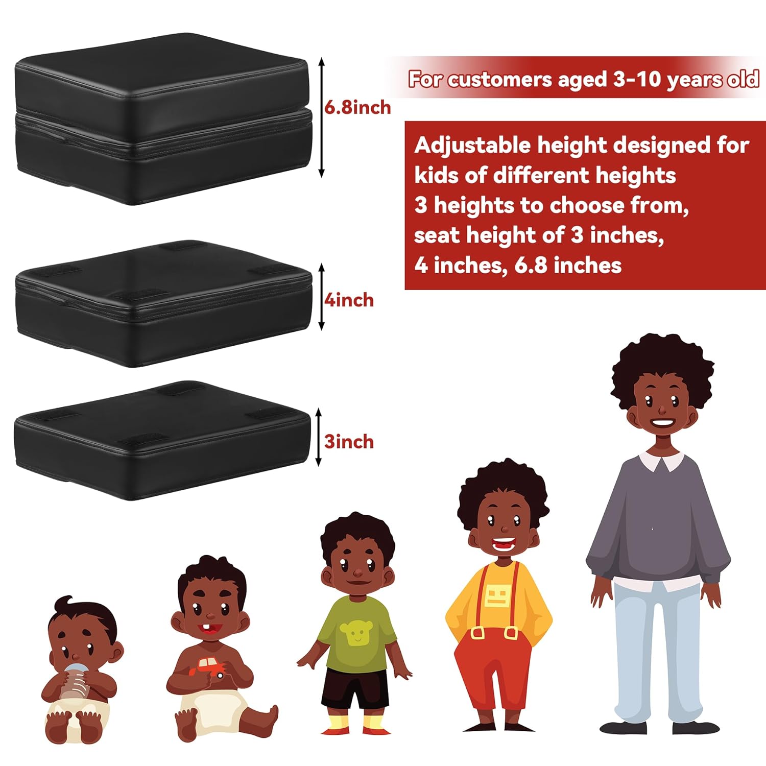 - 【3 Heights Adjustable】Salon Booster Seat cushion can provide convenience for customers aged 3-10 years old, adjustable height designed for kids of different heights, there are 3 heights to choose from, seat height of 3 inches, 4 inches, 6.8 inches, which provides convenience for kids and makes it easier for barbers to cut their hair.