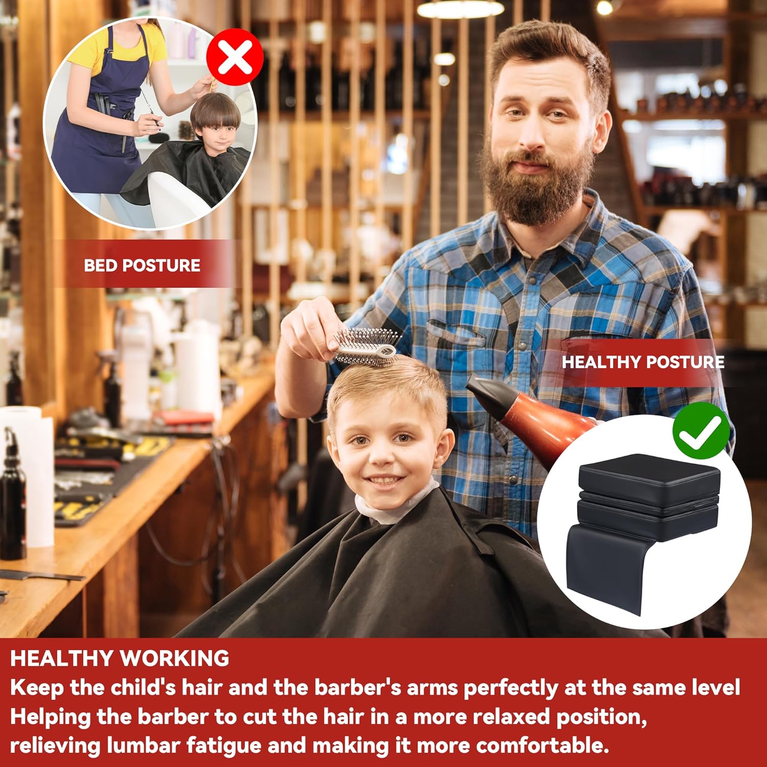- 【Make Barber More Relaxed】When cutting children's hair, barbers often need to bend over, which causes irreversible damage to the spine, the salon seat cushion is designed to keep the child's hair and the barber's arms perfectly at the same level, helping the barber to cut the hair in a more relaxed position, relieving lumbar fatigue and making it more comfortable.