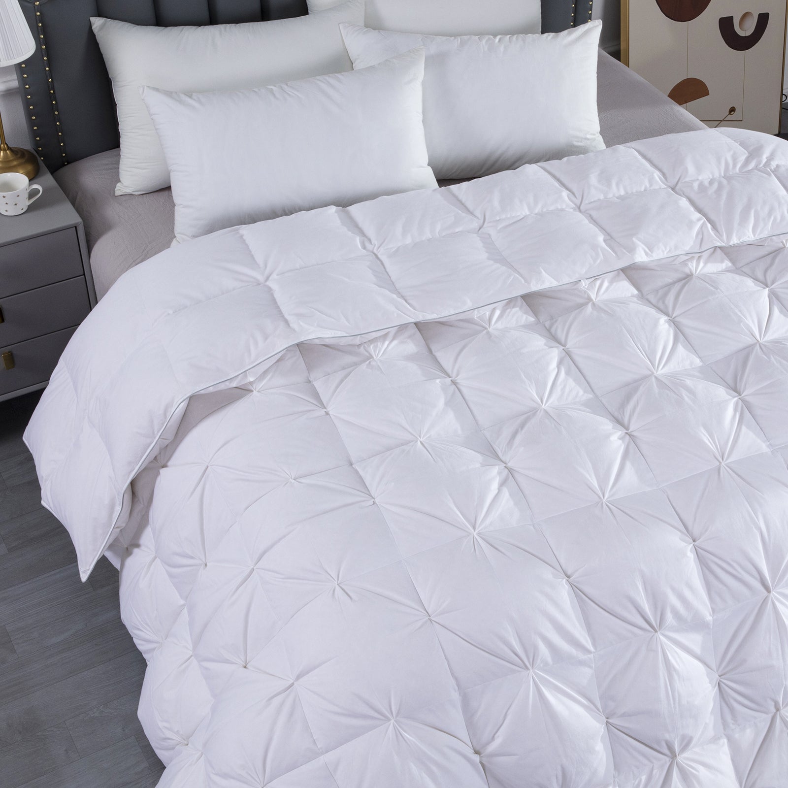 HOMBYS Oversized King Feather and Down Comforter, Pinch Pleat California King Duvet Insert
