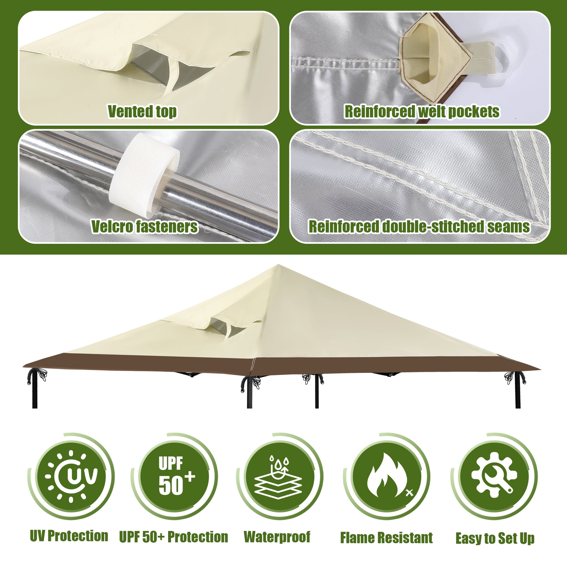 • 【Frame Not Included】: This listing is for the canopy replacement top cover only.13x13 single tier waterproof instant canopy silver coated cover with its easy-to-use attachment system, you can quickly and effortlessly install or remove the Replacement Top Cover.